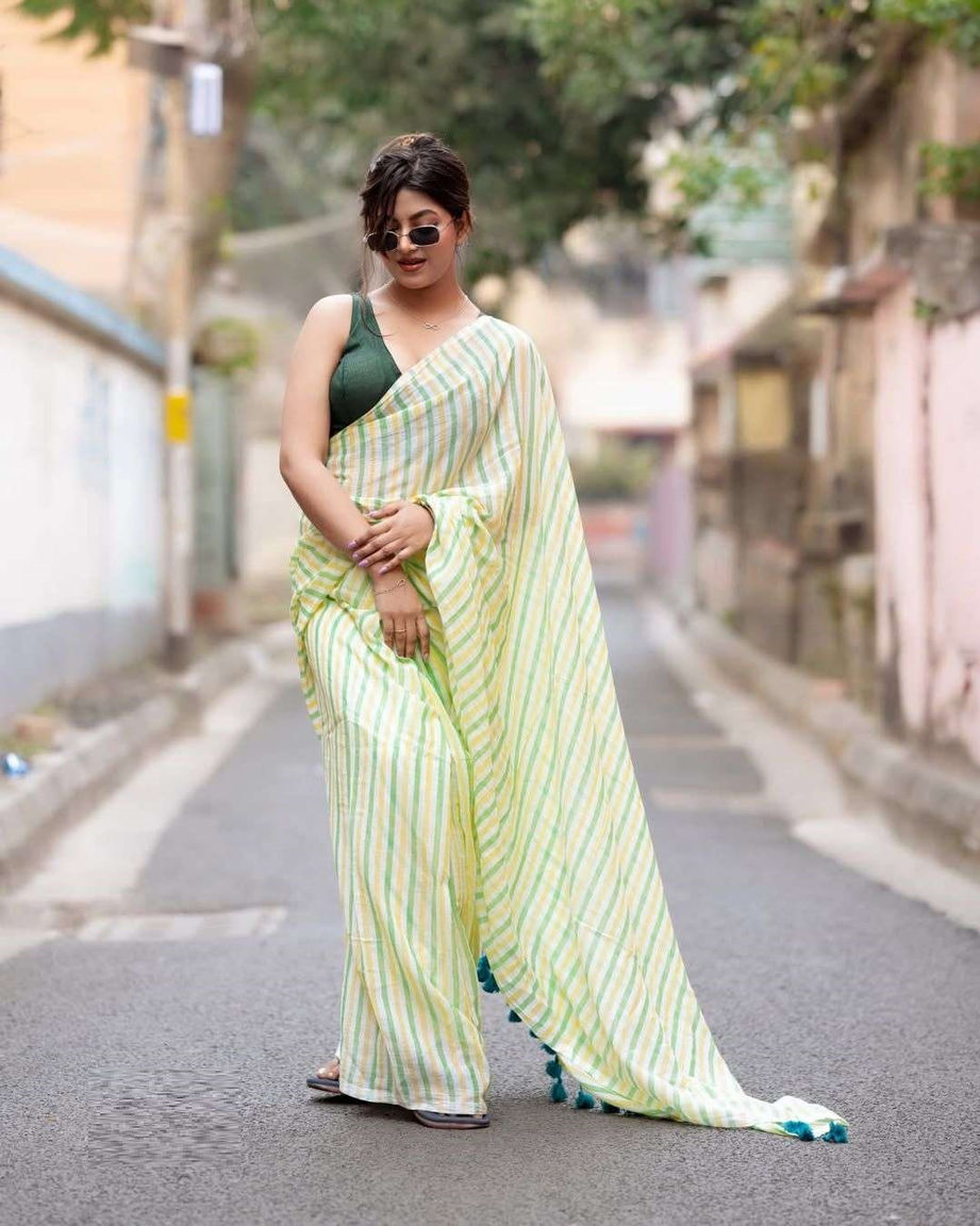 Women's Soft Linen Cotton Saree With Unstitched Blouse Piece For Wedding